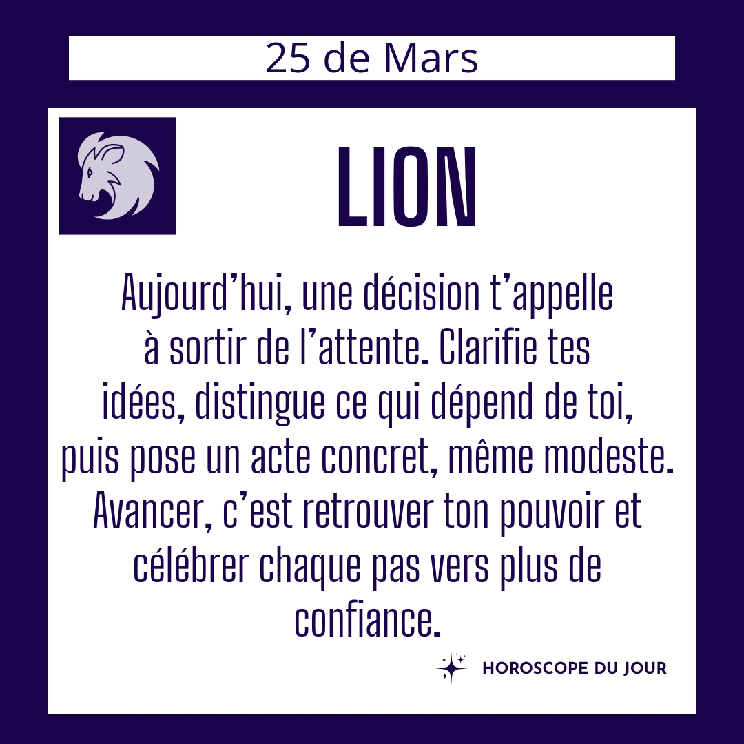 ♌ Lion aujourd'hui Mercredi 25 du Mars