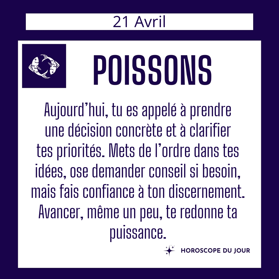 ♓ Poissons aujourd'hui Mardi 21 Avril