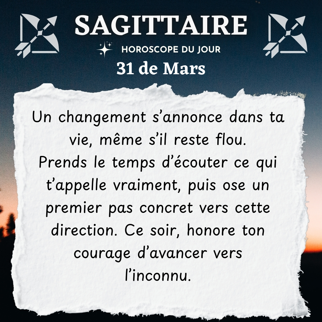 ♐ Sagittaire aujourd'hui Mardi 31 du Mars