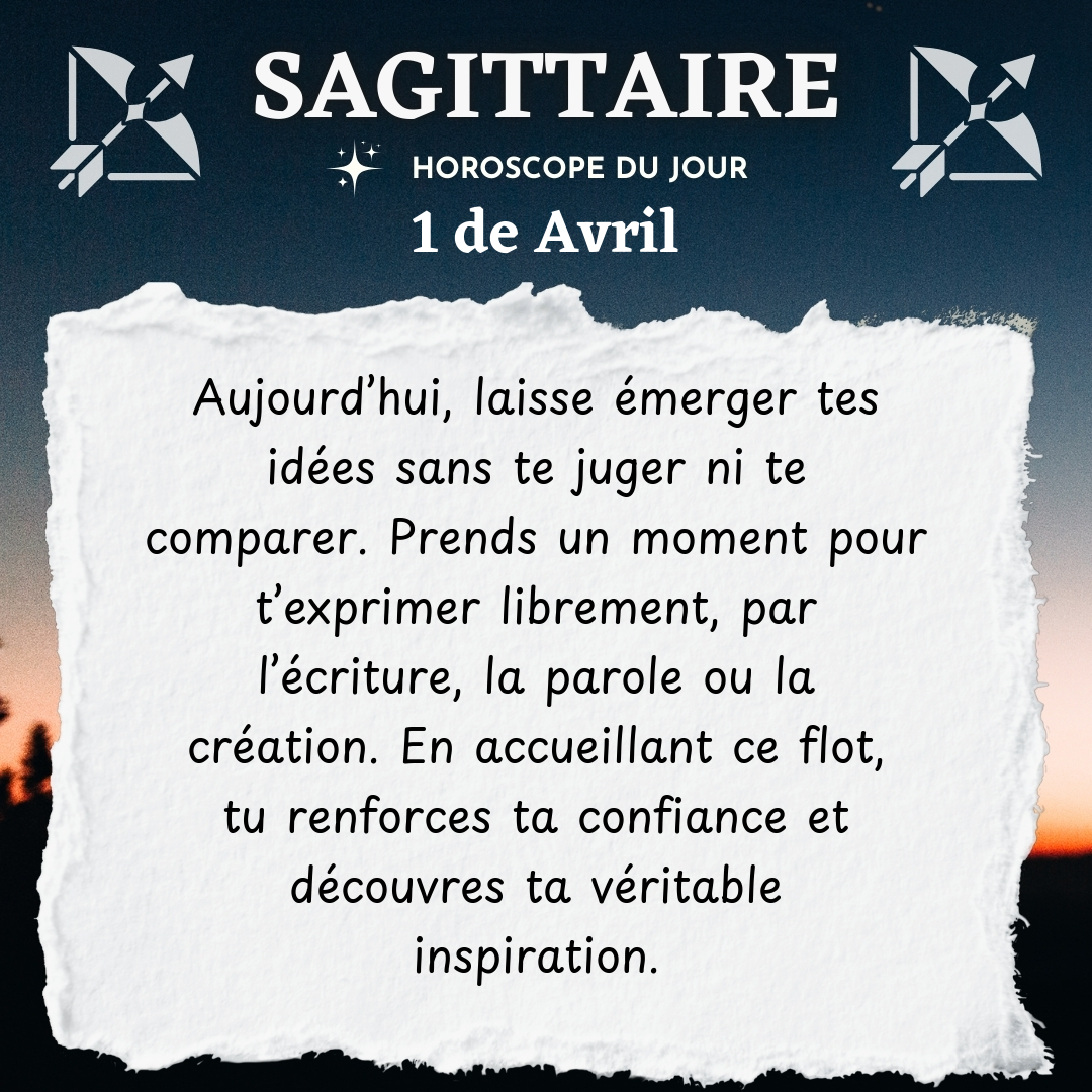 ♐ Sagittaire aujourd'hui Mercredi 1er Avril