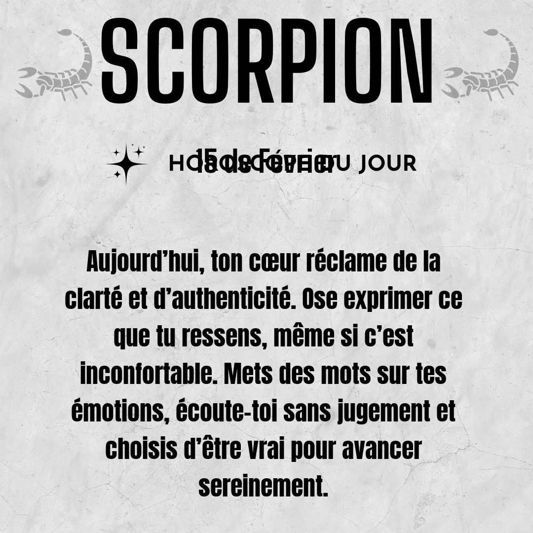 ♏ Scorpion aujourd'hui Dimanche 15 du Février