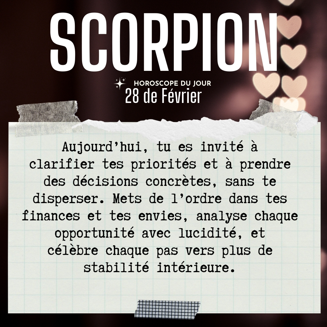 ♏ Scorpion aujourd'hui Samedi 28 du Février