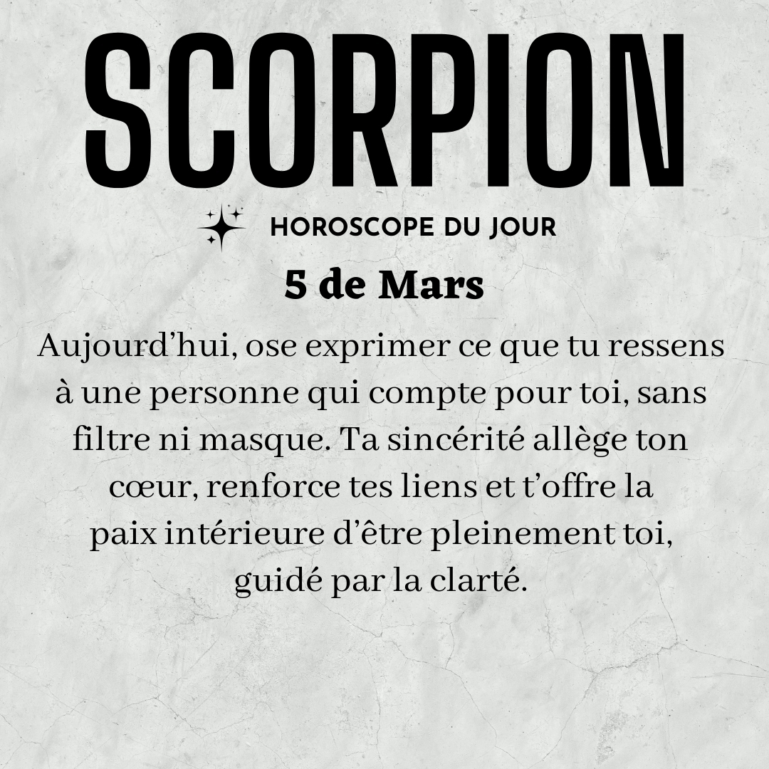 ♏ Scorpion aujourd'hui Jeudi 5 du Mars