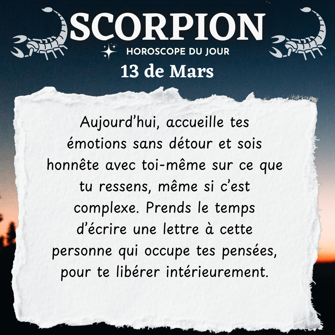 ♏ Scorpion aujourd'hui Vendredi 13 du Mars