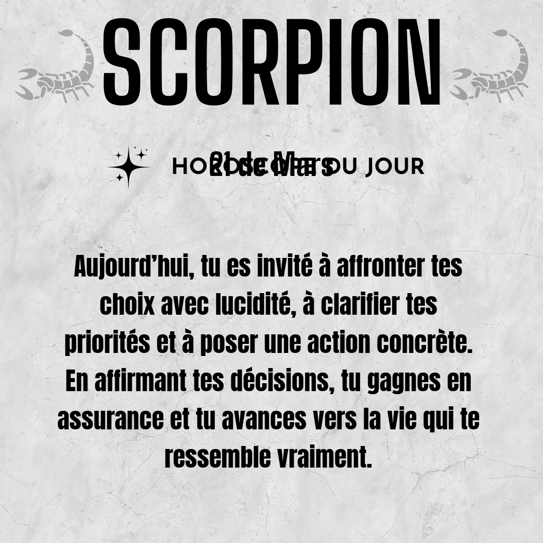 ♏ Scorpion aujourd'hui Samedi 21 du Mars