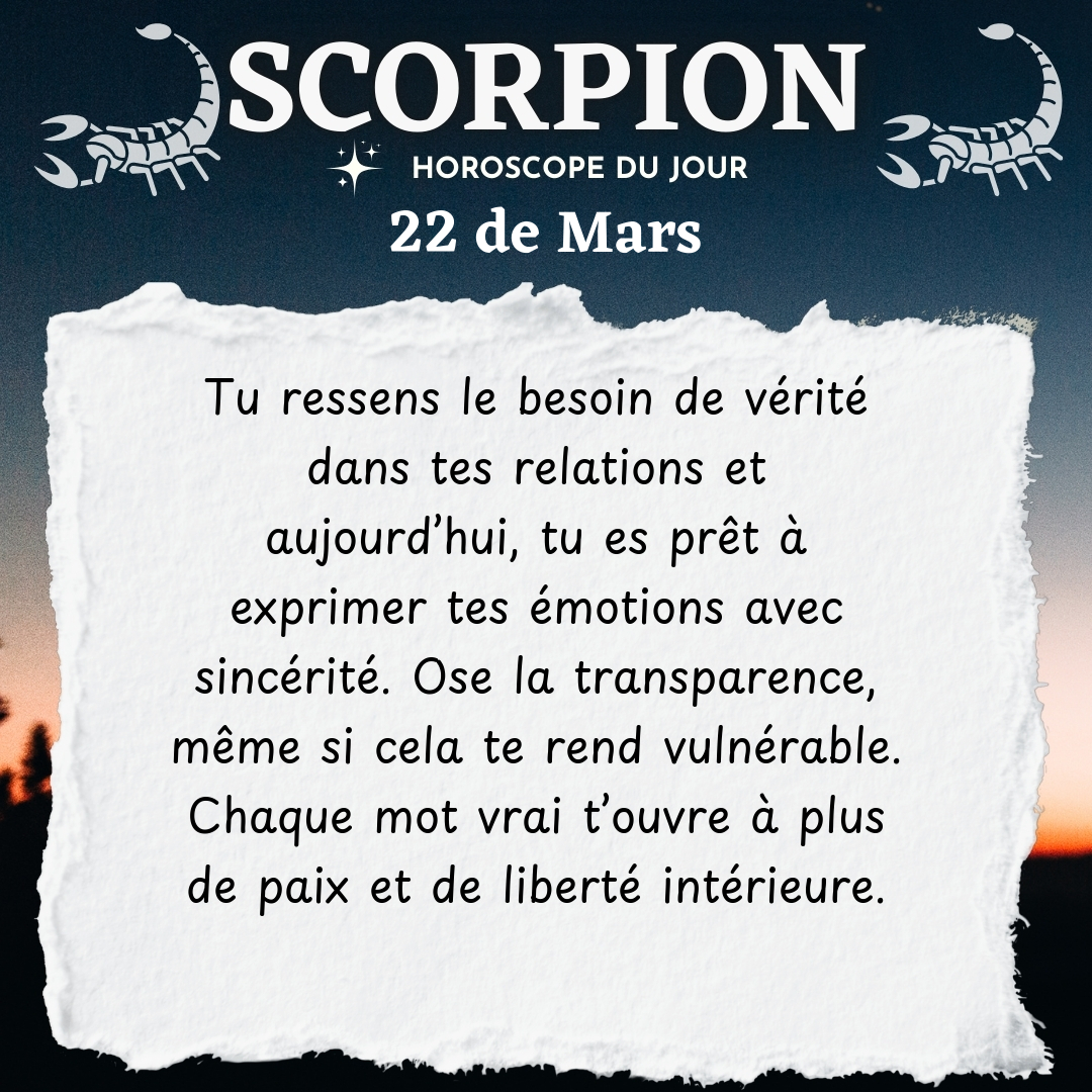 ♏ Scorpion aujourd'hui Dimanche 22 du Mars