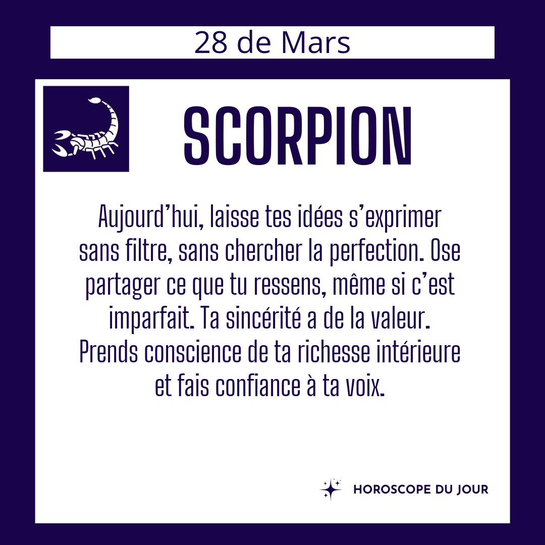 ♏ Scorpion aujourd'hui Samedi 28 du Mars