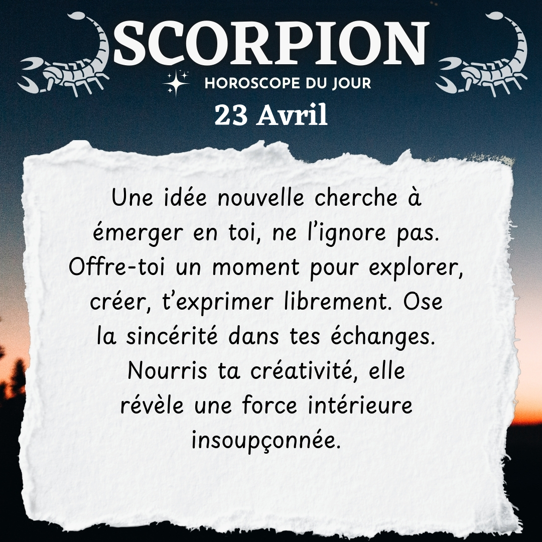 ♏ Scorpion aujourd'hui Jeudi 23 Avril