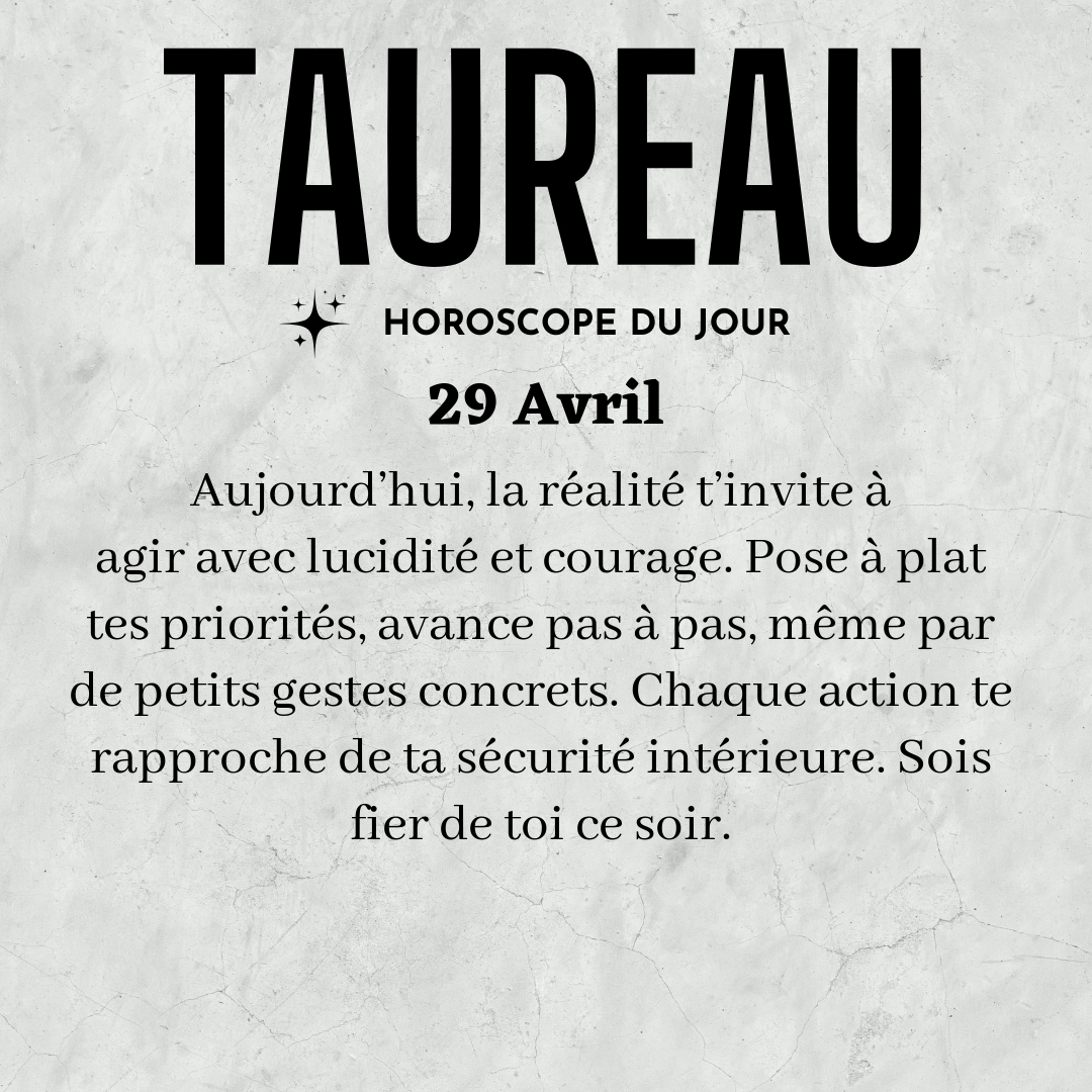 ♉ Taureau aujourd'hui Mercredi 29 Avril