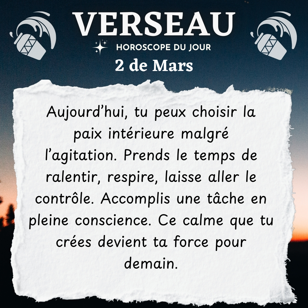 ♒ Verseau aujourd'hui Lundi 2 du Mars