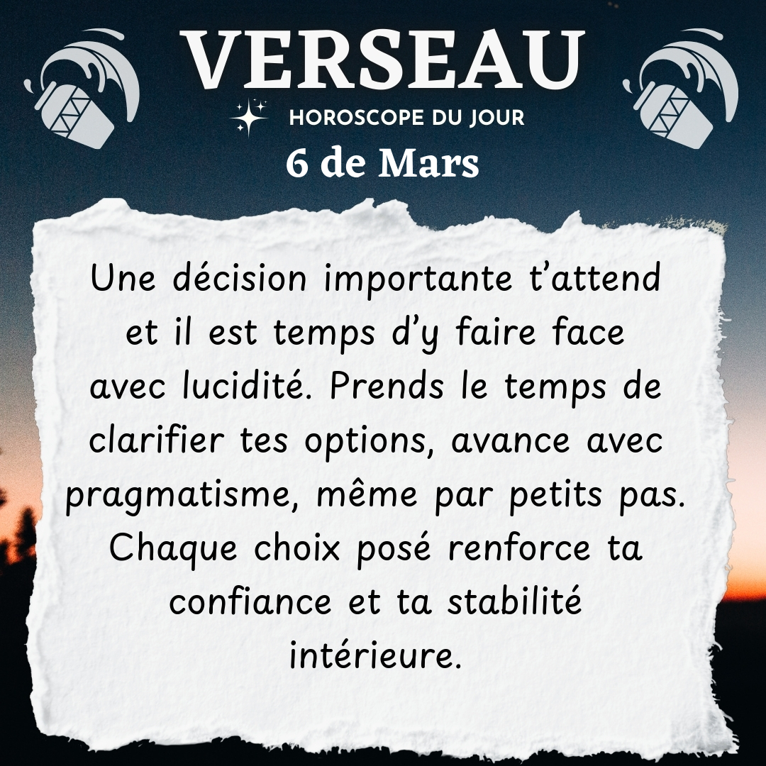 ♒ Verseau aujourd'hui Vendredi 6 du Mars