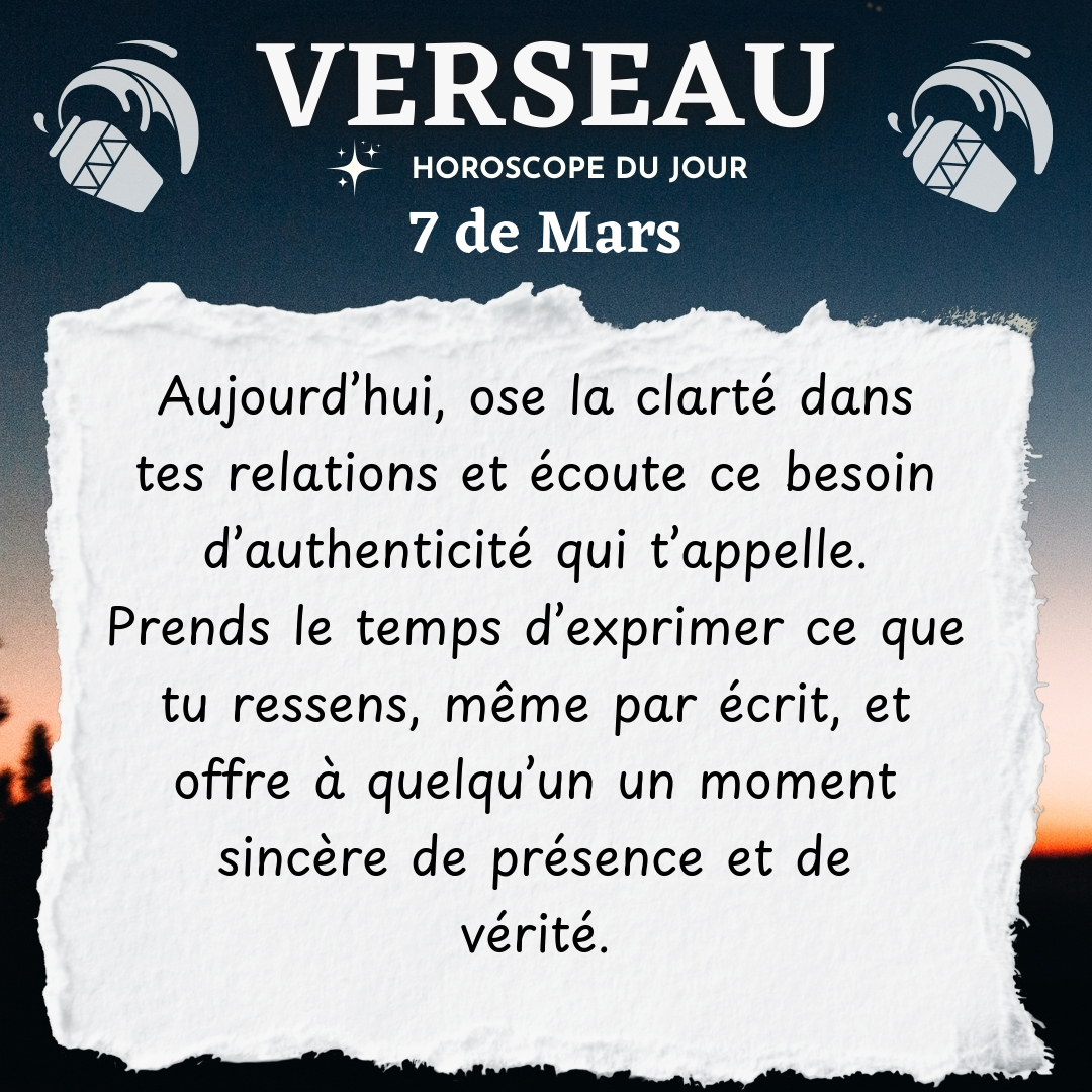 ♒ Verseau aujourd'hui Samedi 7 du Mars
