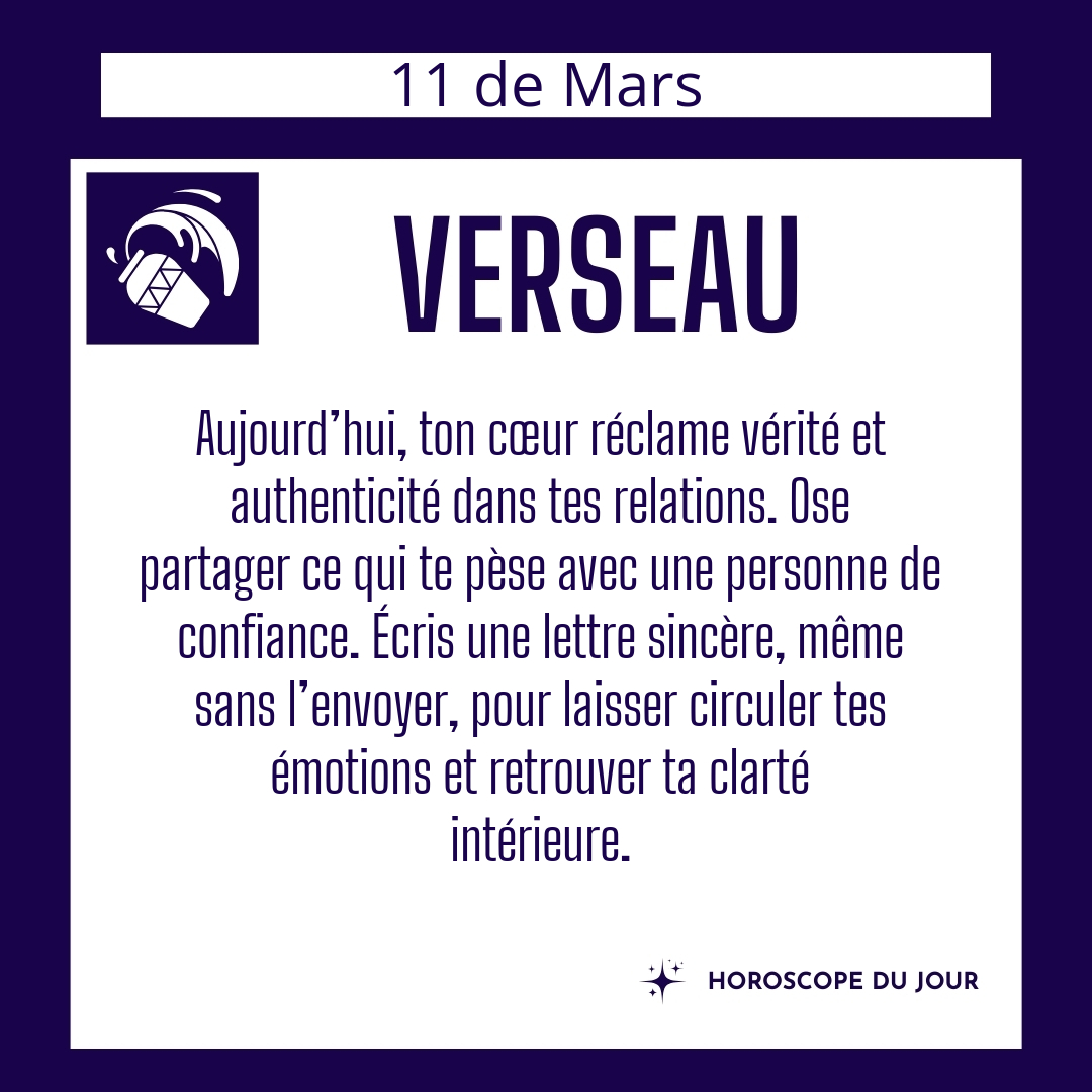 ♒ Verseau aujourd'hui Mercredi 11 du Mars