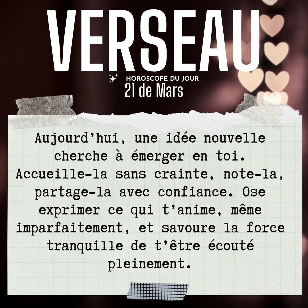 ♒ Verseau aujourd'hui Samedi 21 du Mars
