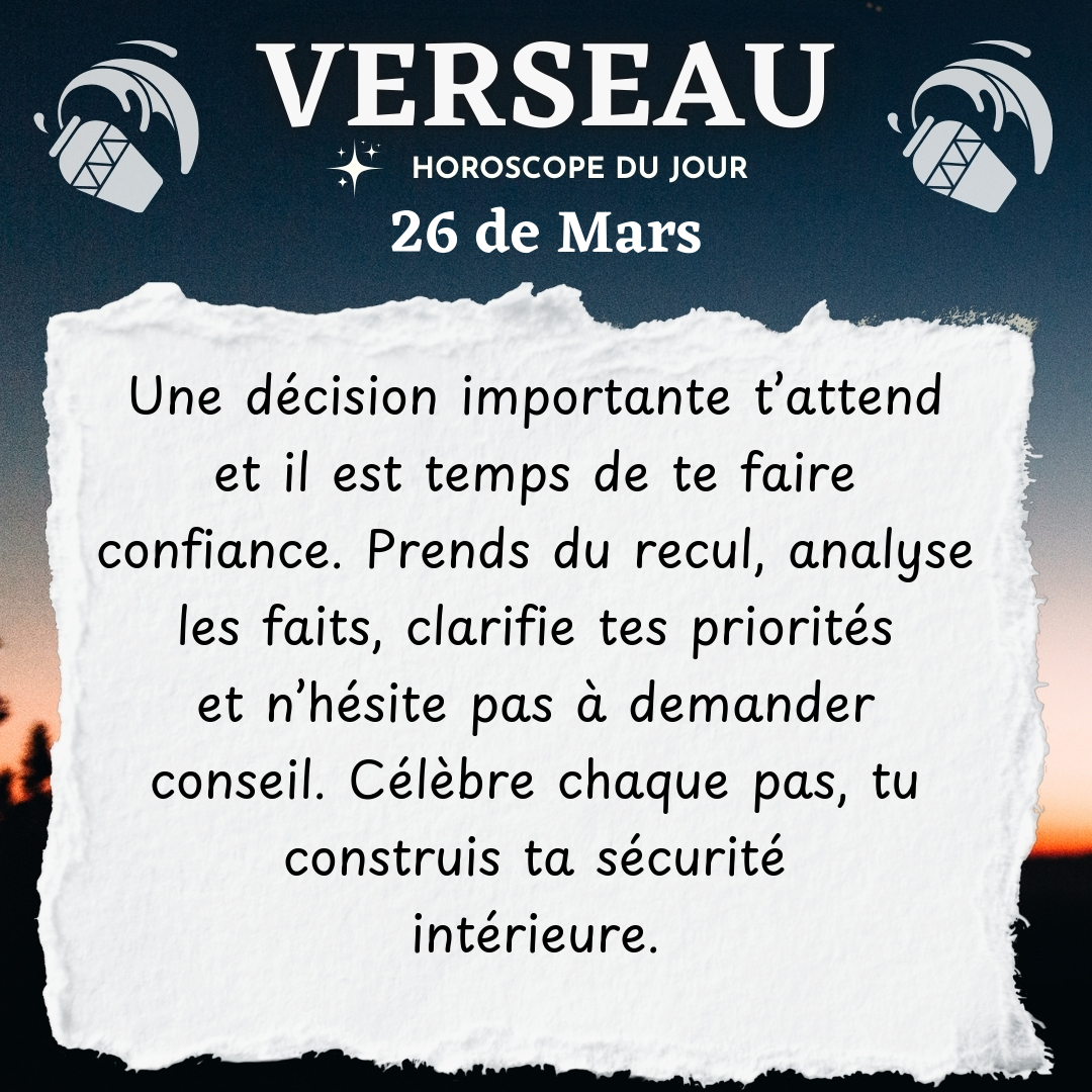 ♒ Verseau aujourd'hui Jeudi 26 du Mars