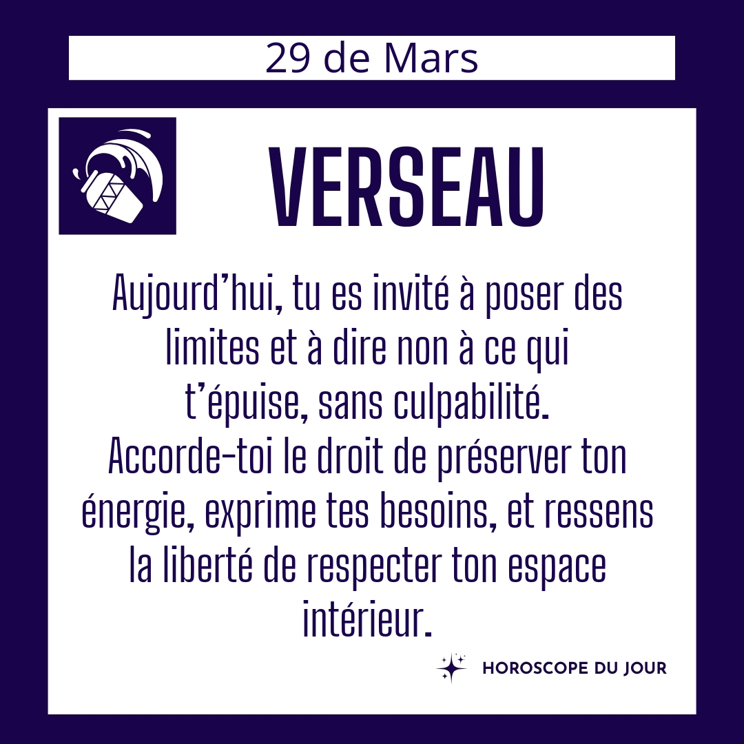 ♒ Verseau aujourd'hui Dimanche 29 du Mars