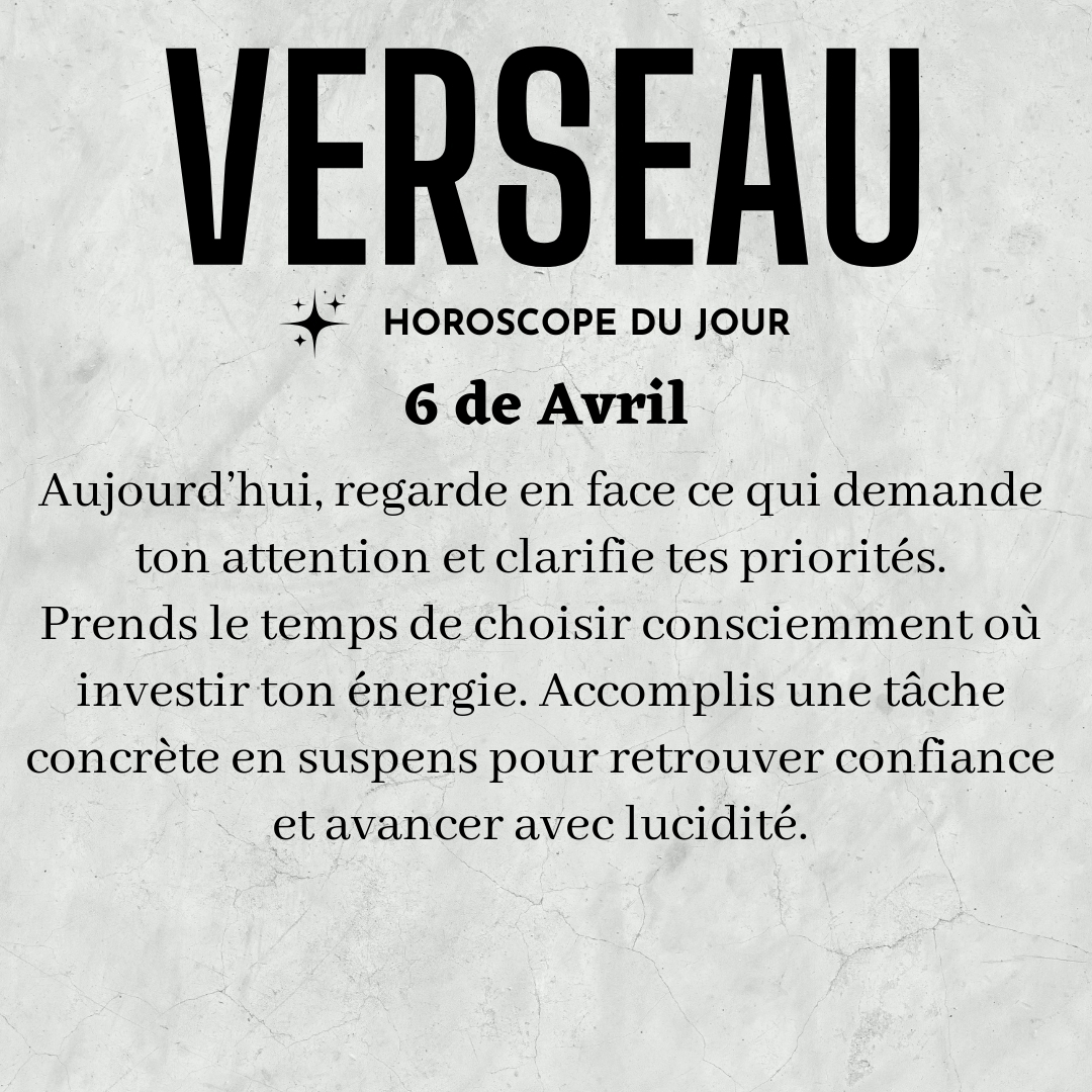 ♒ Verseau aujourd'hui Lundi 6 Avril