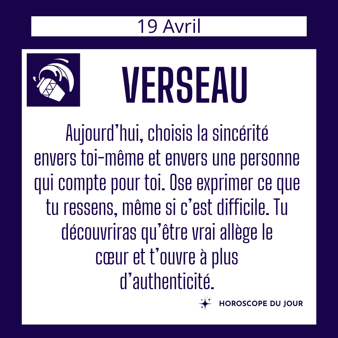 ♒ Verseau aujourd'hui Dimanche 19 Avril