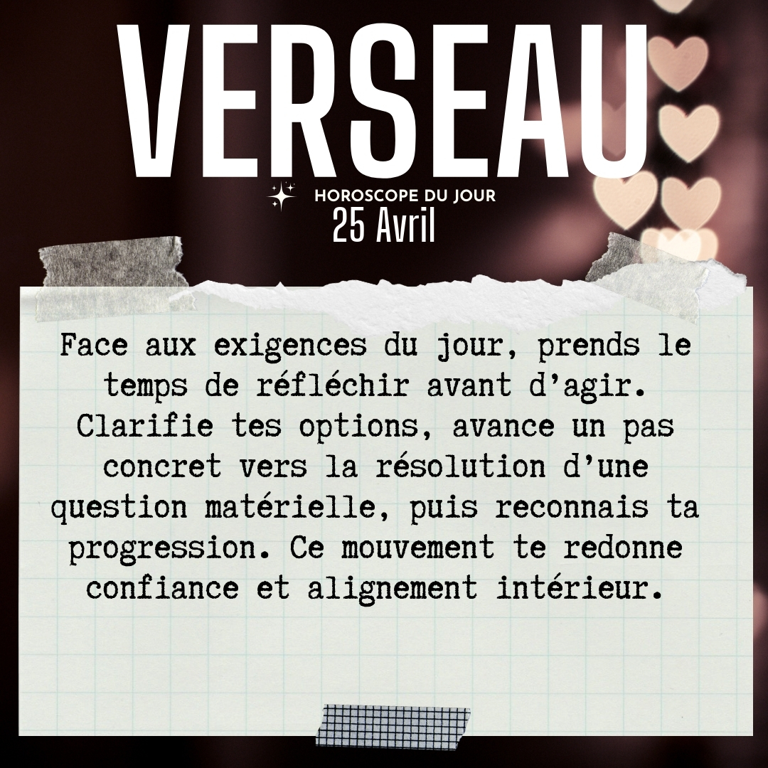 ♒ Verseau aujourd'hui Samedi 25 Avril