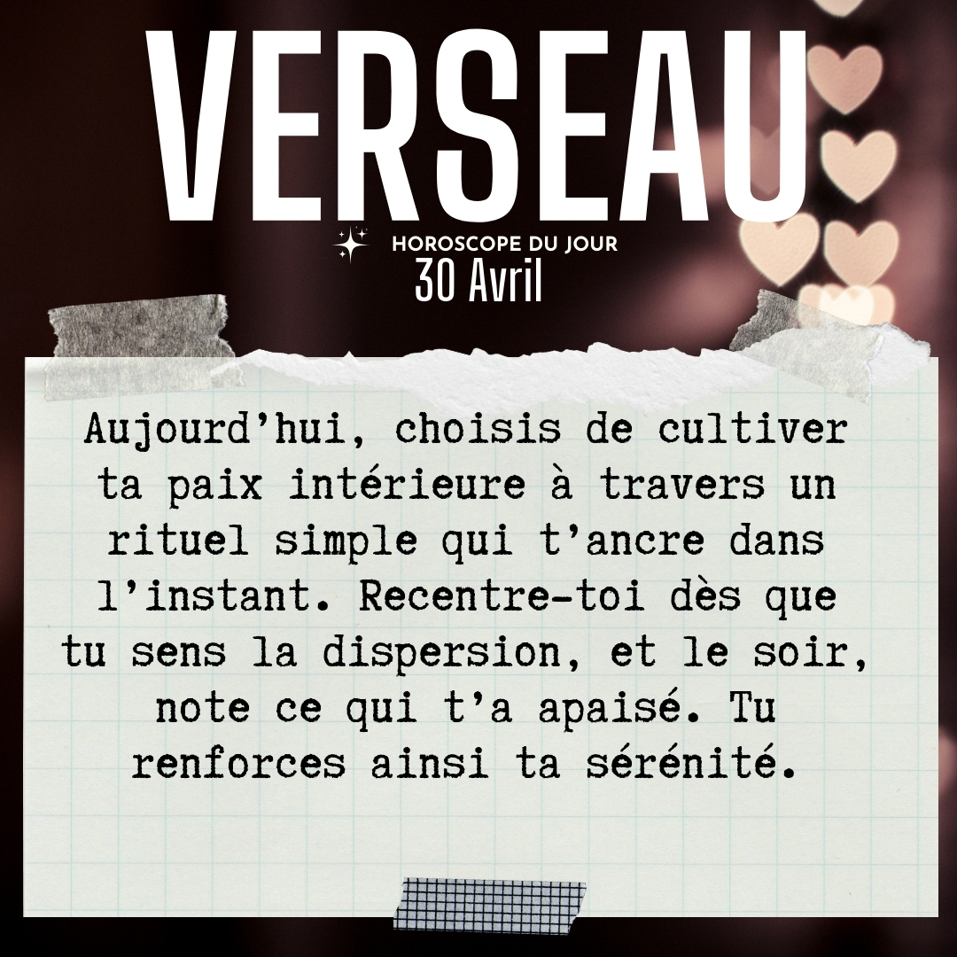 ♒ Verseau aujourd'hui Jeudi 30 Avril