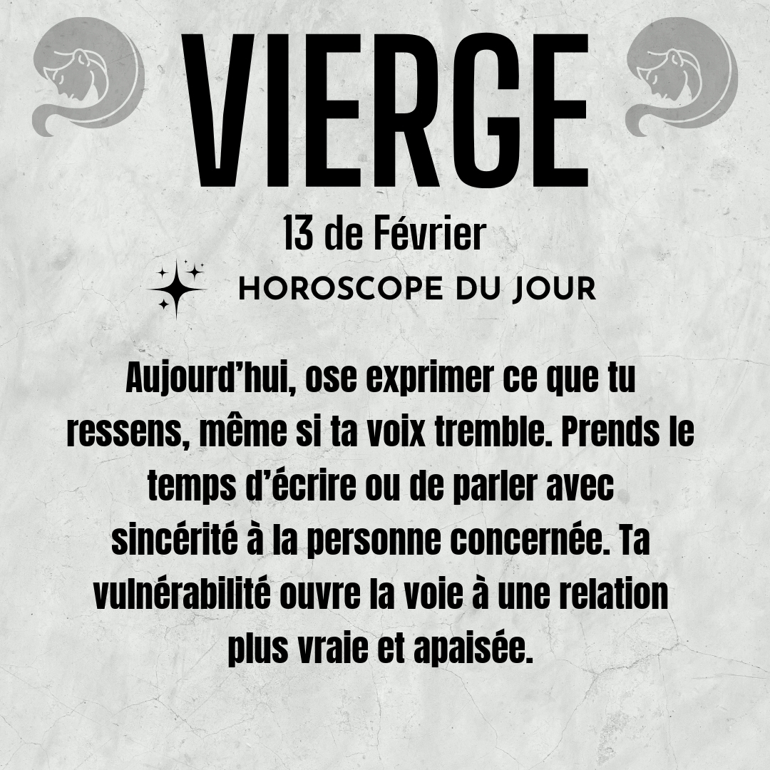 ♍ Vierge aujourd'hui Vendredi 13 du Février