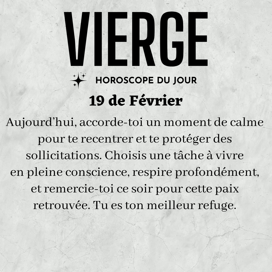 ♍ Vierge aujourd'hui Jeudi 19 du Février