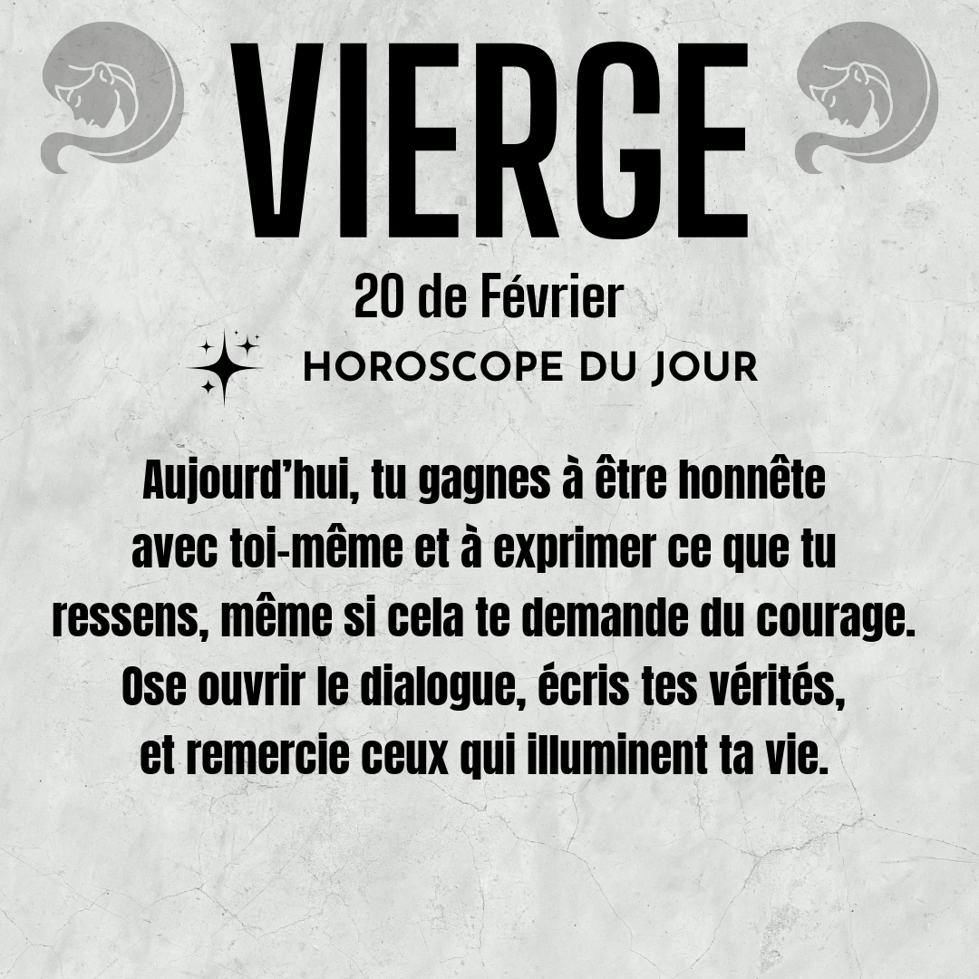 ♍ Vierge aujourd'hui Vendredi 20 du Février