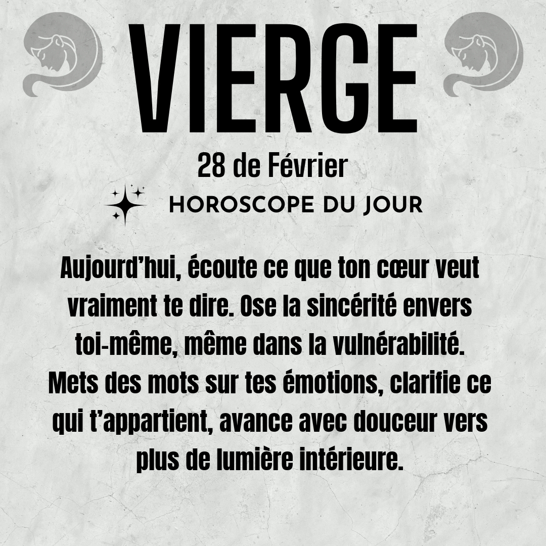 ♍ Vierge aujourd'hui Samedi 28 du Février