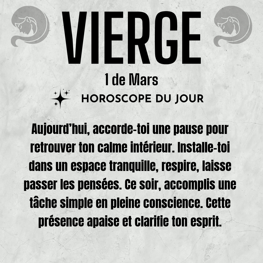 ♍ Vierge aujourd'hui Dimanche 1 du Mars