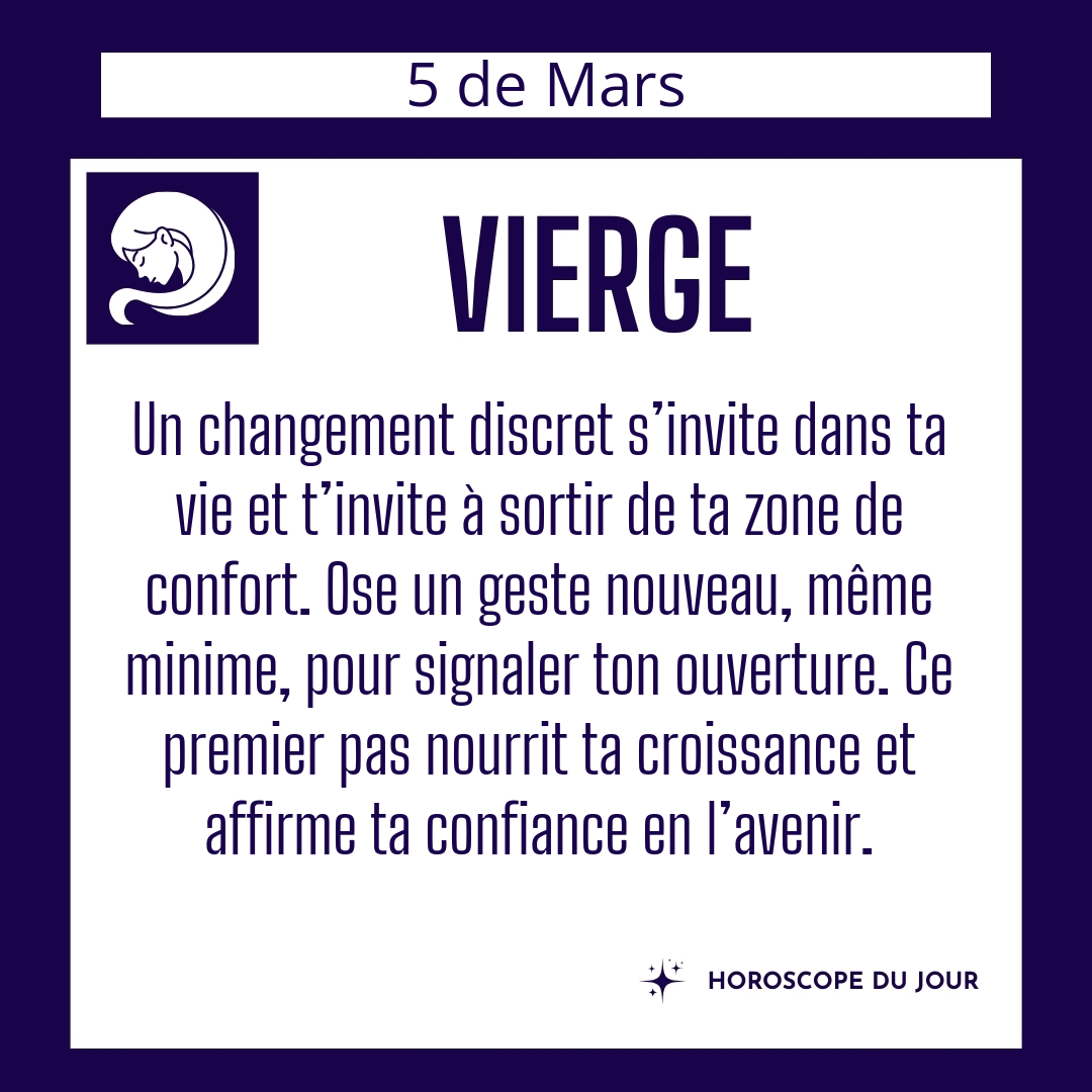 ♍ Vierge aujourd'hui Jeudi 5 du Mars