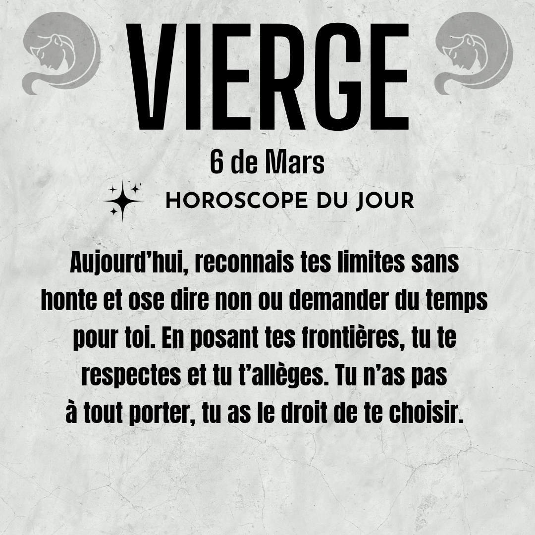 ♍ Vierge aujourd'hui Vendredi 6 du Mars