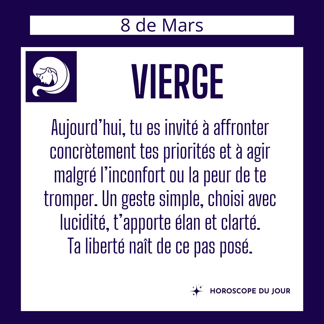 ♍ Vierge aujourd'hui Dimanche 8 du Mars