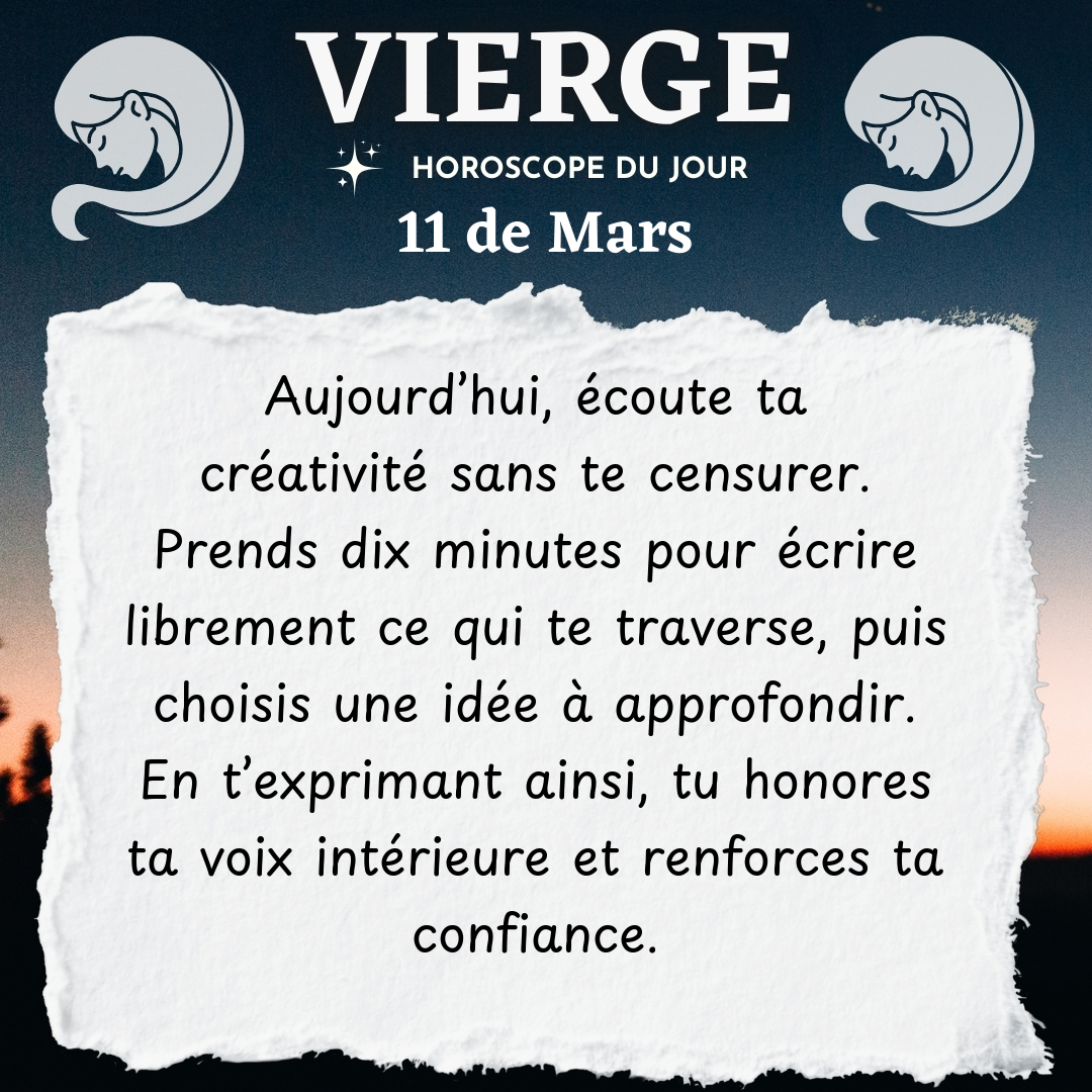 ♍ Vierge aujourd'hui Mercredi 11 du Mars