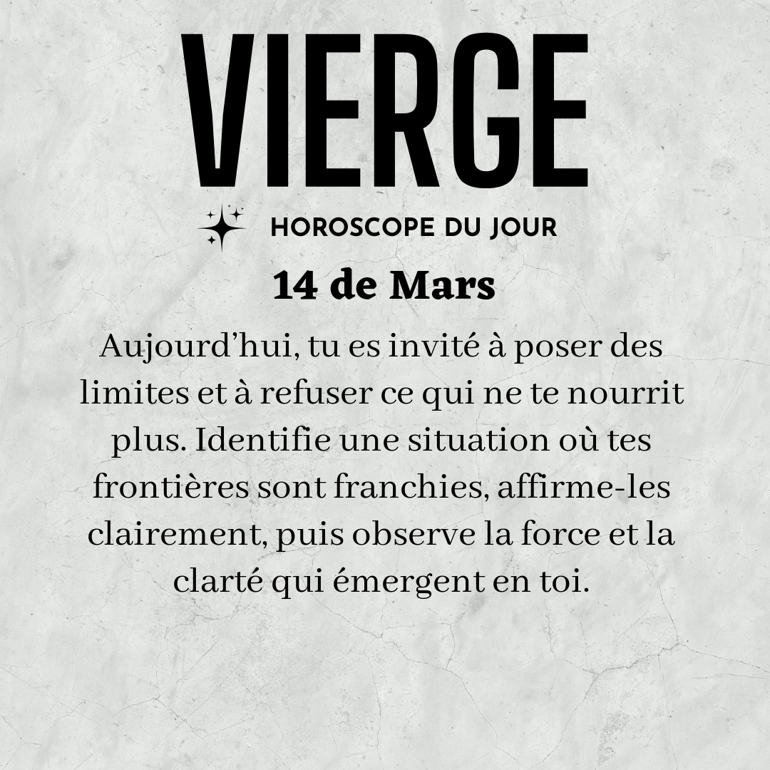 ♍ Vierge aujourd'hui Samedi 14 du Mars