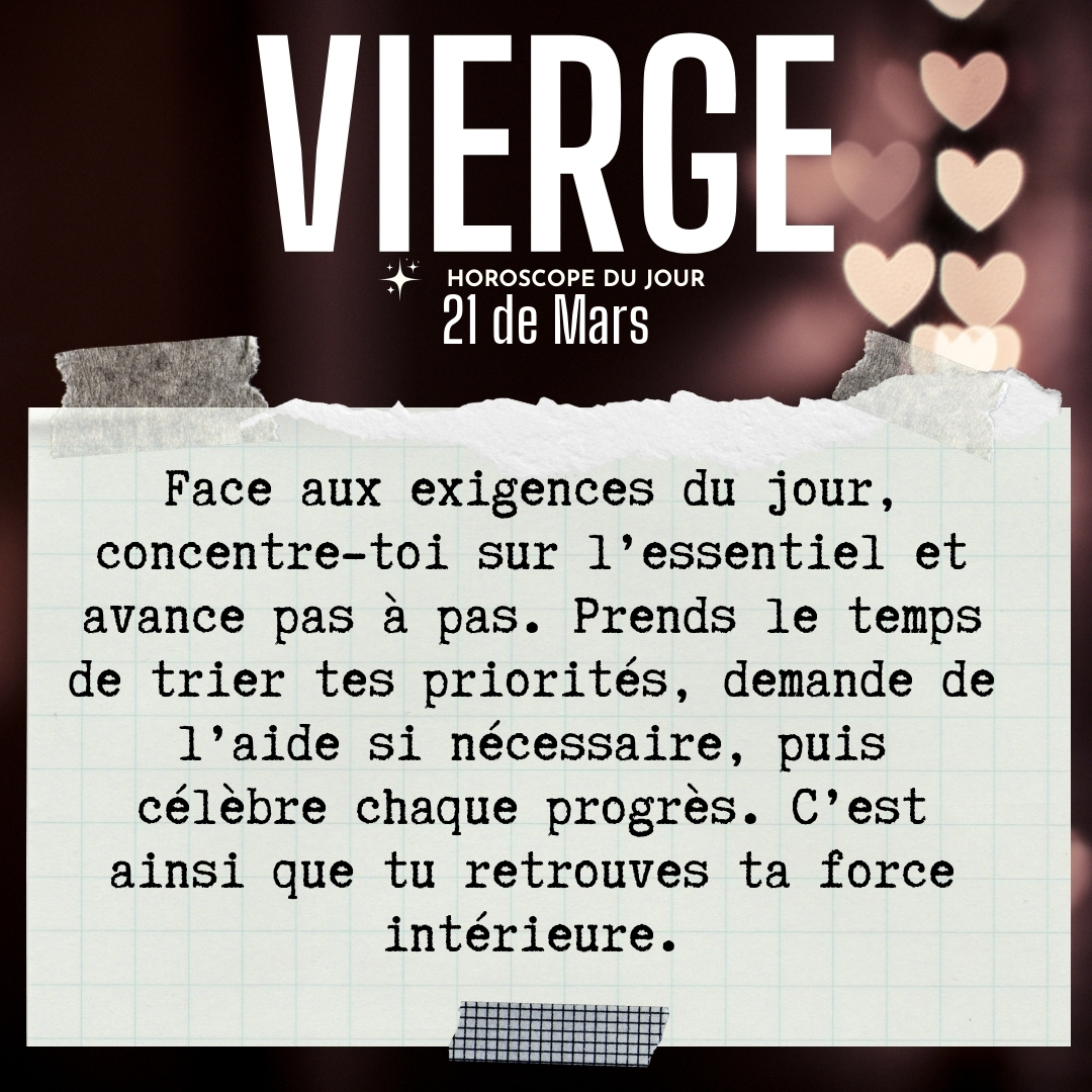 ♍ Vierge aujourd'hui Samedi 21 du Mars