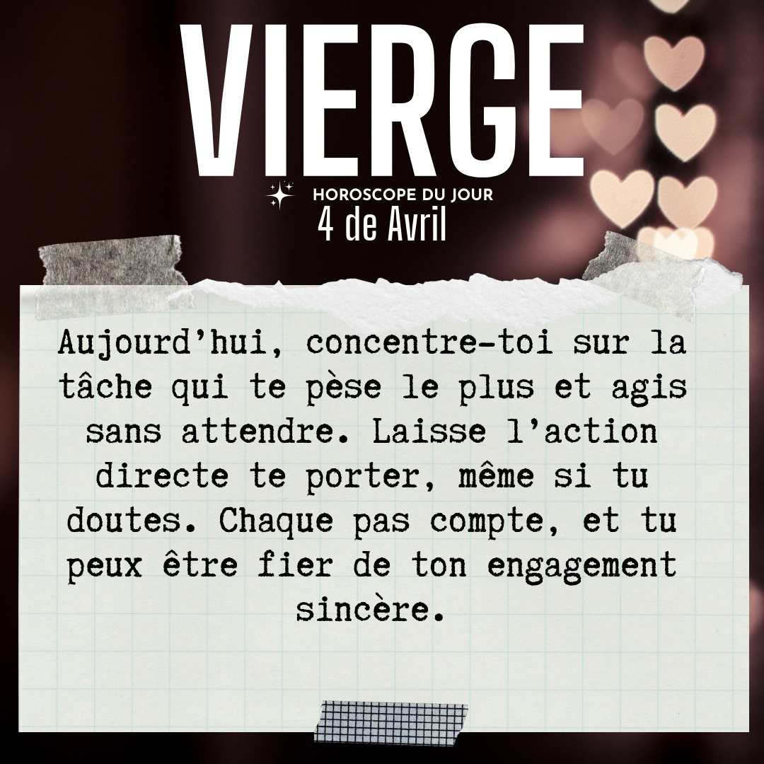 ♍ Vierge aujourd'hui Samedi 4 Avril
