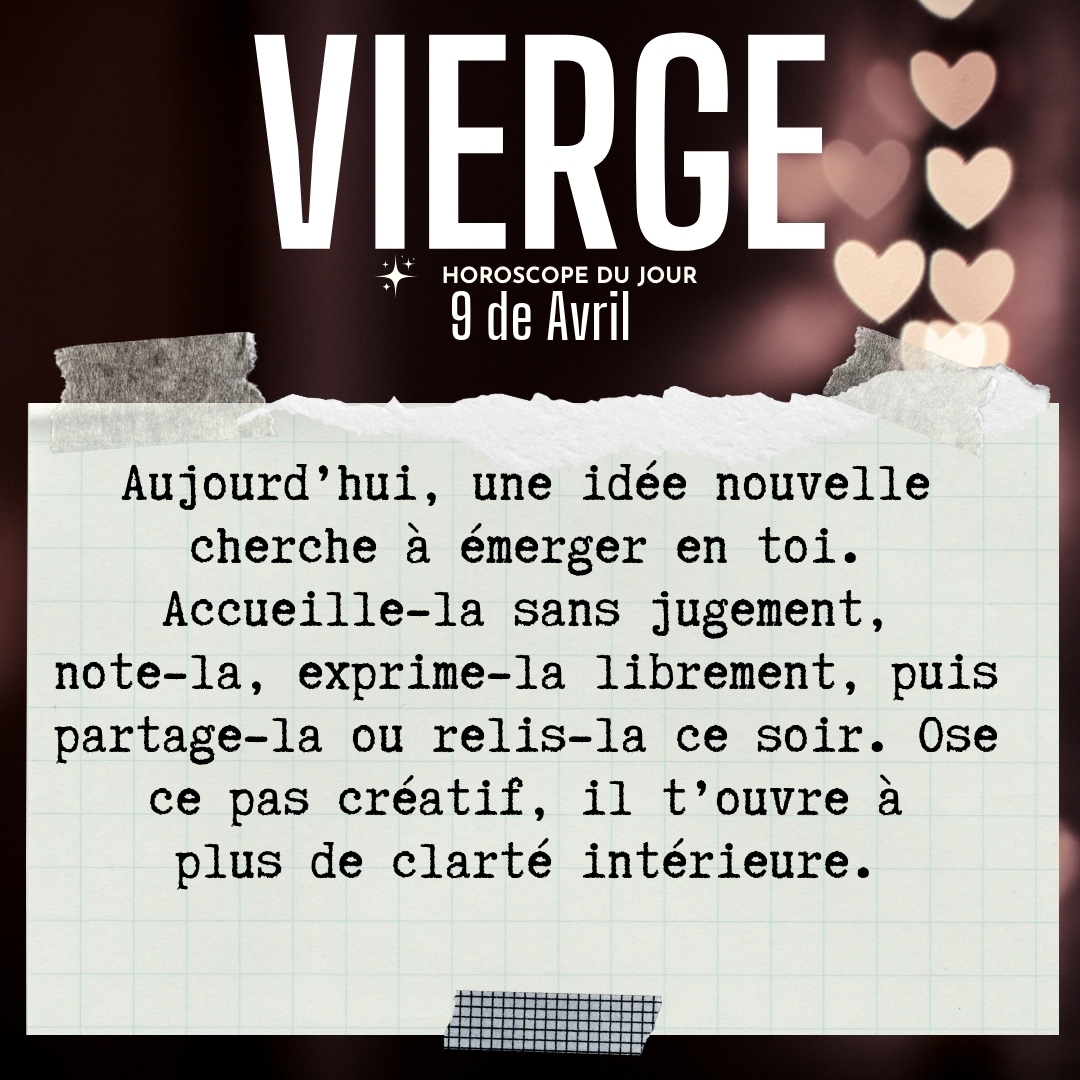 ♍ Vierge aujourd'hui Jeudi 9 Avril