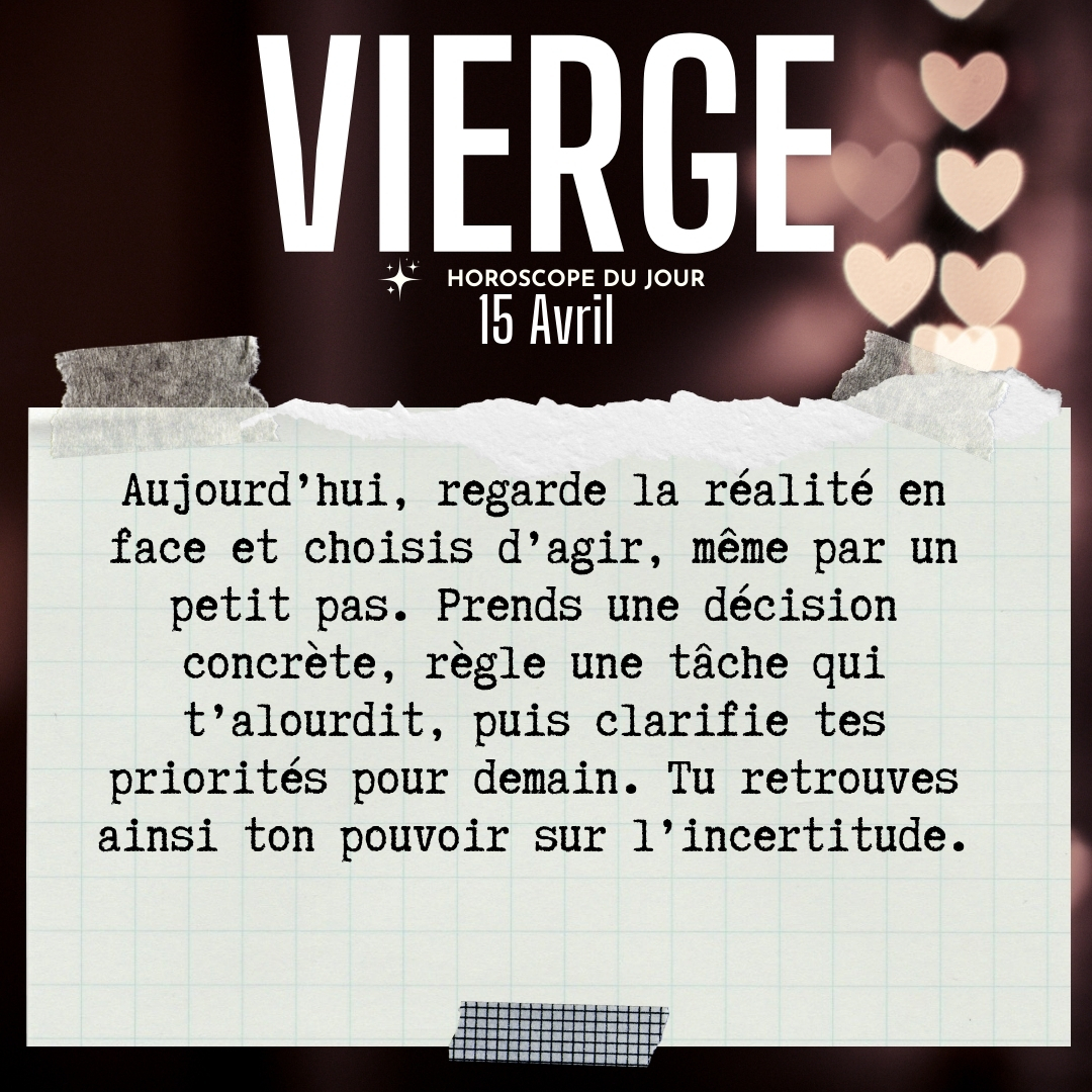 ♍ Vierge aujourd'hui Mercredi 15 Avril