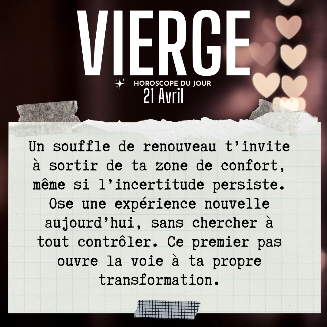 ♍ Vierge aujourd'hui Mardi 21 Avril