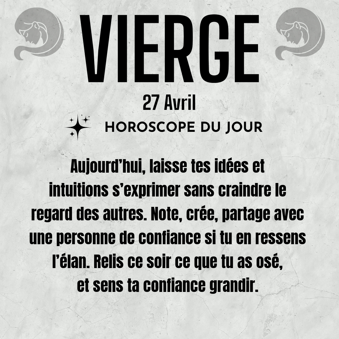♍ Vierge aujourd'hui Lundi 27 Avril