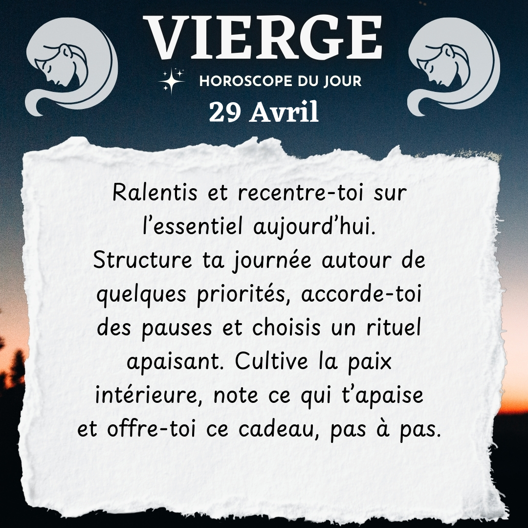 ♍ Vierge aujourd'hui Mercredi 29 Avril