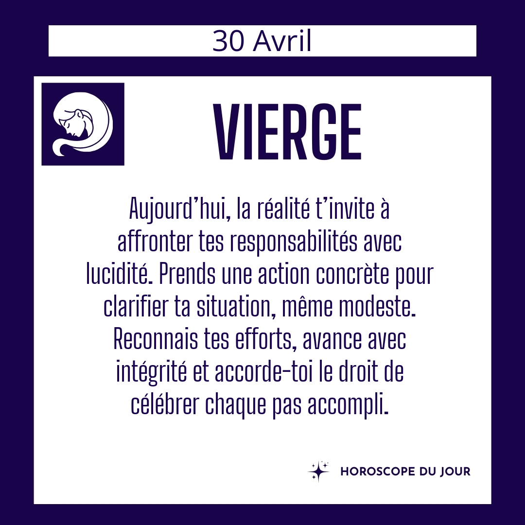 ♍ Vierge aujourd'hui Jeudi 30 Avril